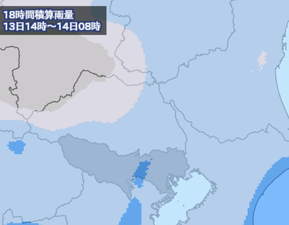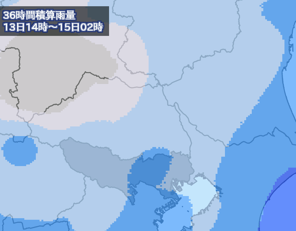 - 66時間後および72時間後の積算雨量図は数値予報モデルの予報期間の関係上、以下の時間帯は出力されません。